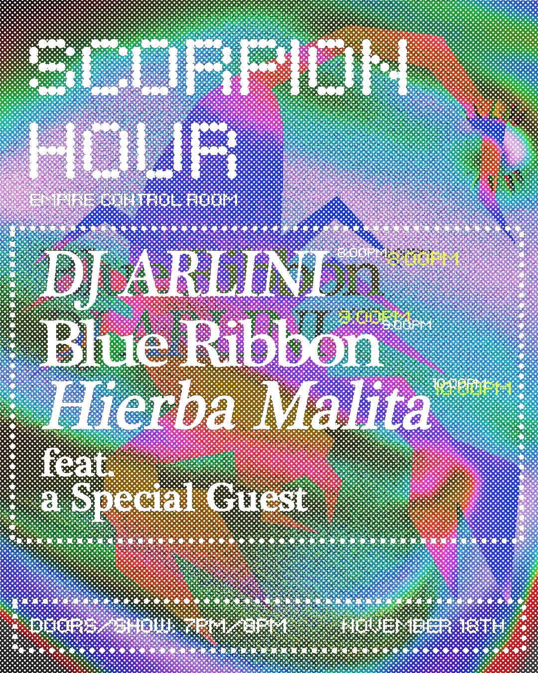 Heard & Flwrpot Presents: Scorpion Hour in the Control Room Heard & Flwrpot Presents: Scorpion Hour at Empire Control Room on Tuesday, November 18, 2025 Doors: 7:00pm / Show: 8:00pm TICKETS: $10 SOCIALS: Instagram | Spotify | YouTube All Ages 00 days 00 hours 00 minutes 00 seconds Date Nov 18 2025 Time 7:00 pm Buy Tickets